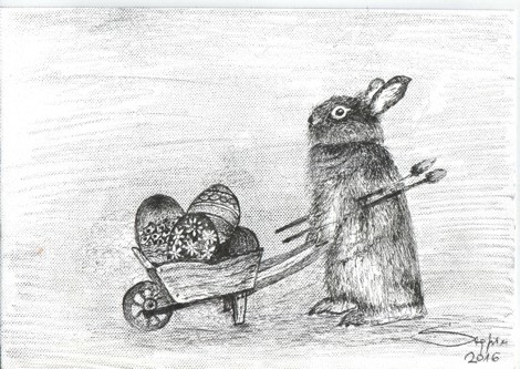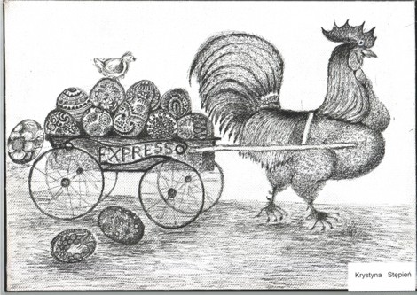 PS Do życzeń załączamy kilka kartek wielkanocnych, wykonanych na płótnie techniką szrafowania przez szynkielowiankę - Panią Krystynę Jurczak-Stępień.  Jedna z nich, kogucik wiozący pisanki, zajęła I miejsce w konkursie Wielkanoc 2016, organizowanym przez Wieluński Dom Kultury