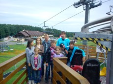 11.08.2011 roku odbyła się jednodniowa wycieczka, w której uczestniczyło ośmioro dzieci z naszej parafii. Głównym opiekunem, był ksiądz proboszcz Jacek Fryś, wraz z panem katechetom Markiem Osydą. Zwiedzaliśmy okolice Bełchatowa. Najpierw a tarasu widokowego, obserwowaliśmy pracę w kopalni węgla brunatnego. Było to interesujące, tym bardziej że nasze rodzinne strony za parę lat, prawdopodobnie tez tak będą wyglądały. Nacieszywszy wzrok widokami kopalni, pojechaliśmy na Górę Kamińsk, gdzie świetnie bawiliśmy się zjeżdżając na saneczkach, na specjalnym torze saneczkowym. Potem podzieliliśmy się na dwie grupy: grupa chłopców szalała na gokartach, a dziewczyny próbowały swoich sił na ściance wspinaczkowej. Aby ostudzić emocje pojechaliśmy na basen, gdzie ,,gdzie dopadł nas głód", który został zaspokojony w przy basenowym barze. Na koniec pojechaliśmy do parku na terenie którego była: hala sportowa, korty tenisowe, boisko i mała stadnina koni, na których jeździły dżokejki. Cały dzień spędziliśmy w miłym towarzystwie, za co dziękujemy księdzu proboszczowi i panu katechecie oraz wszystkim sponsorom.